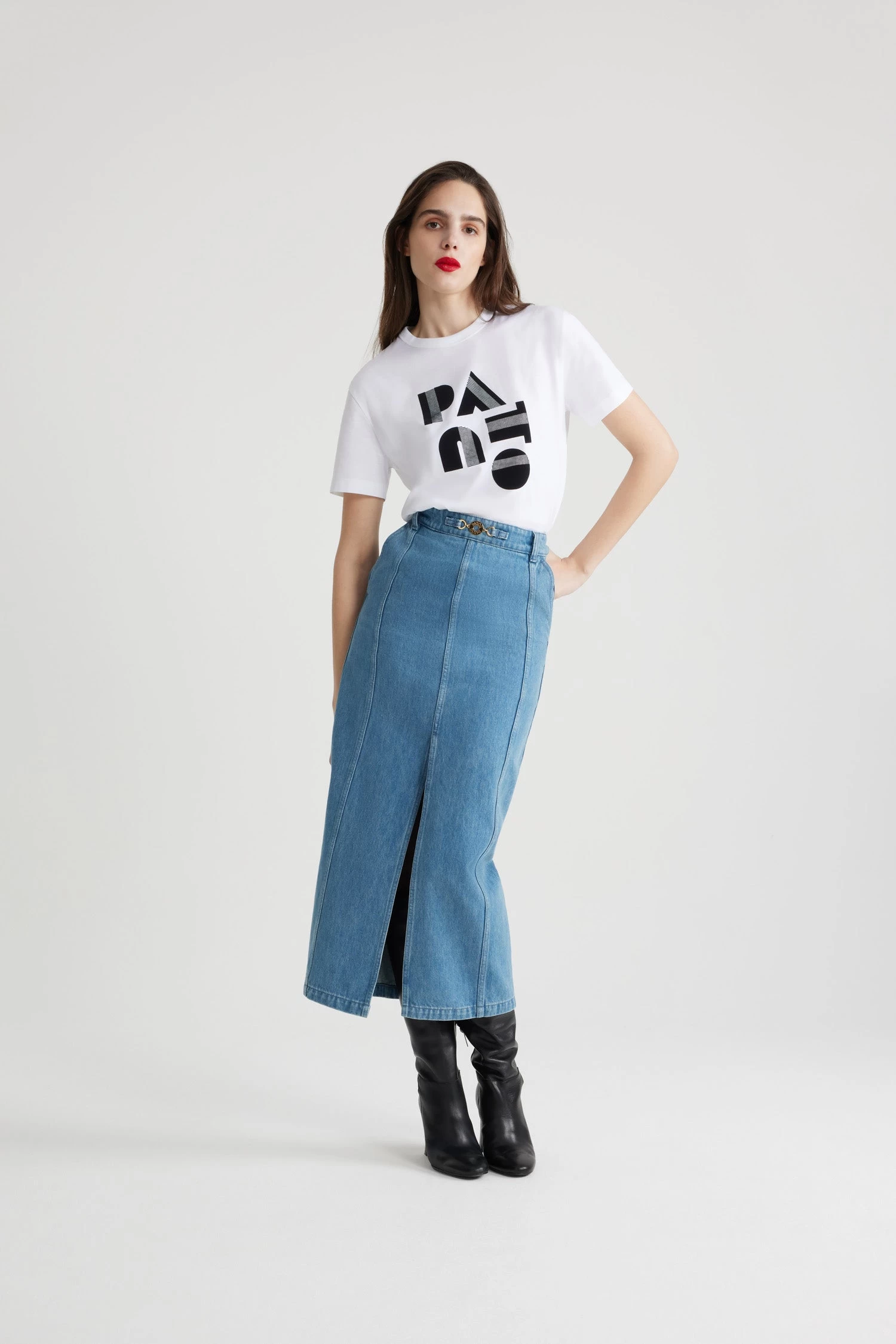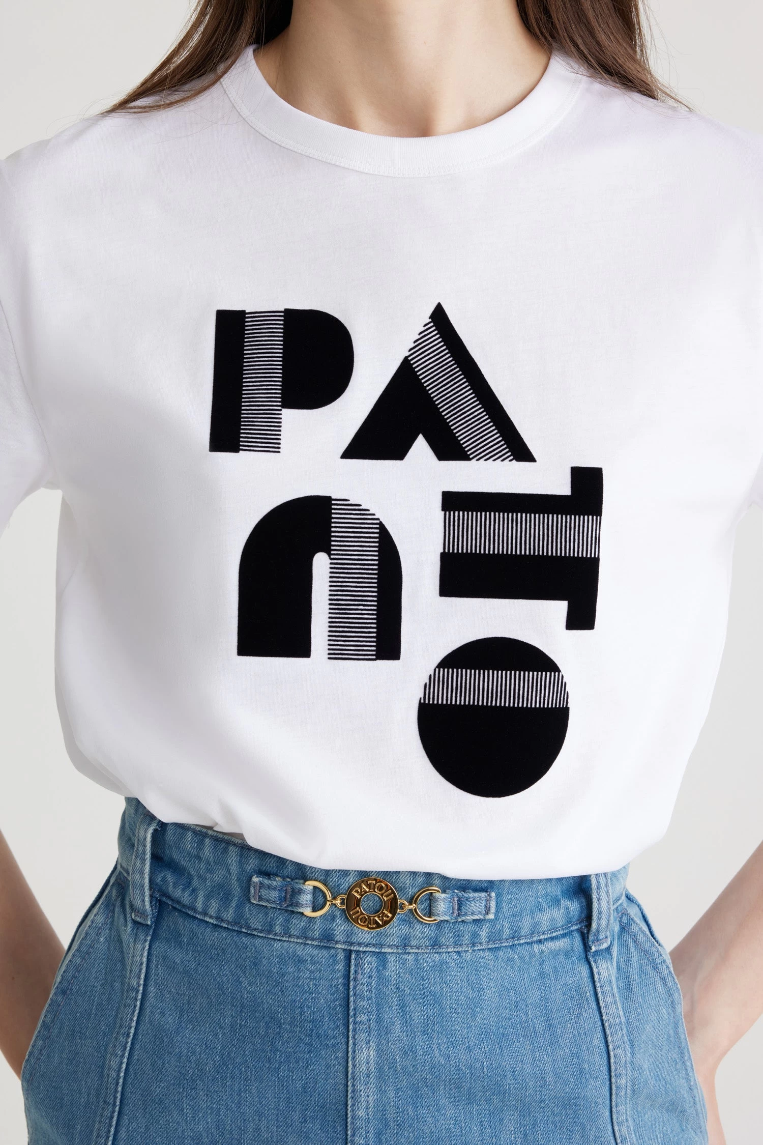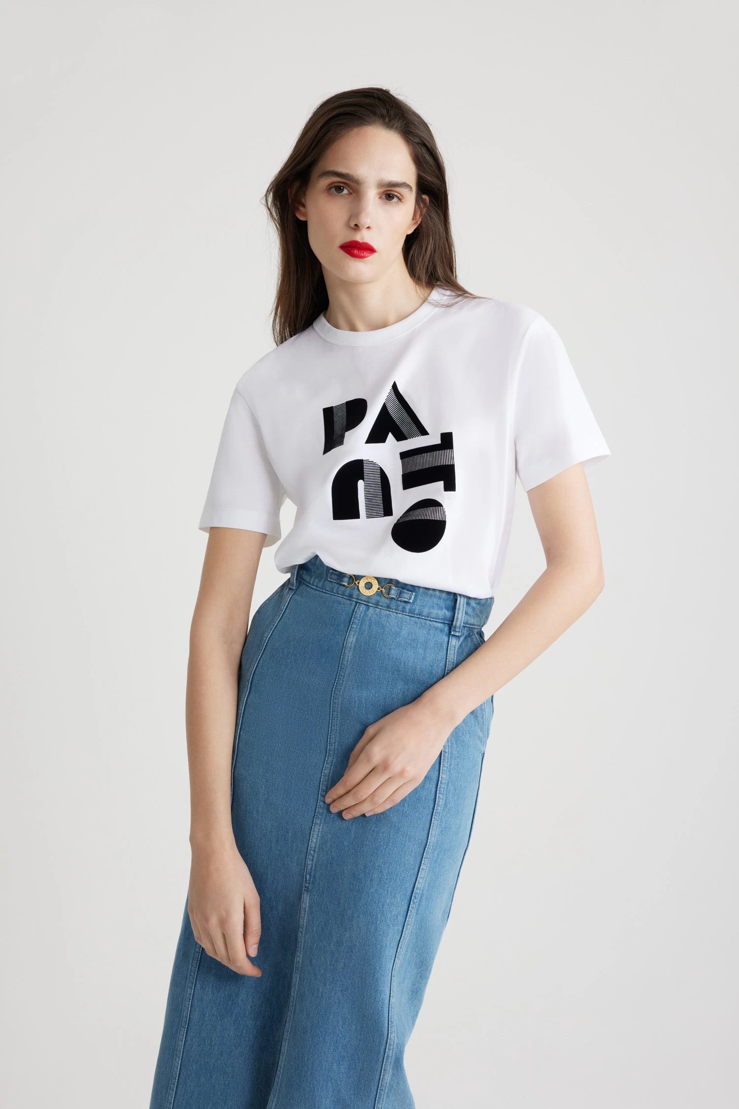 White organic cotton t-shirt. Crewneck style, regular fit. Art Deco Patou logo across the front.