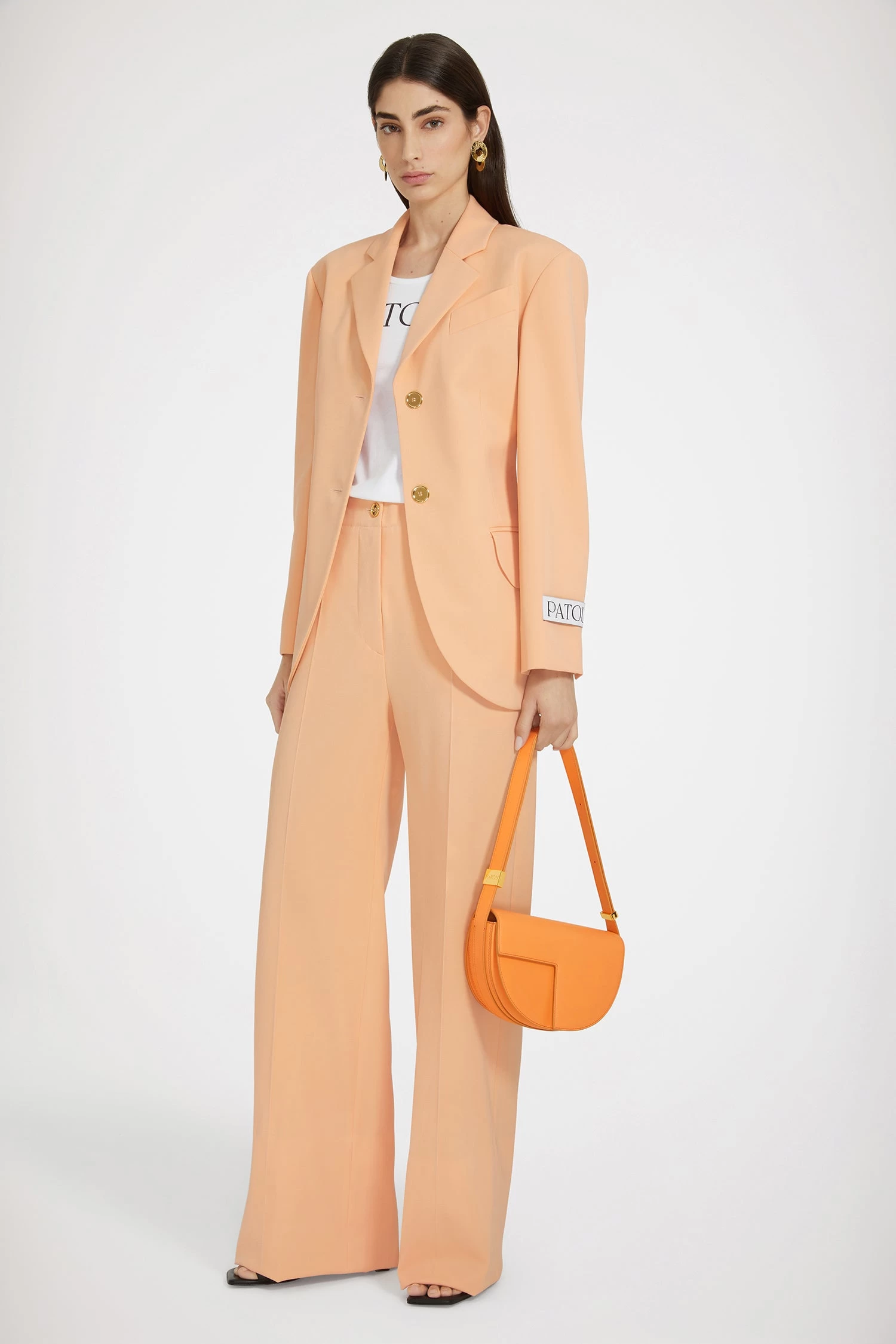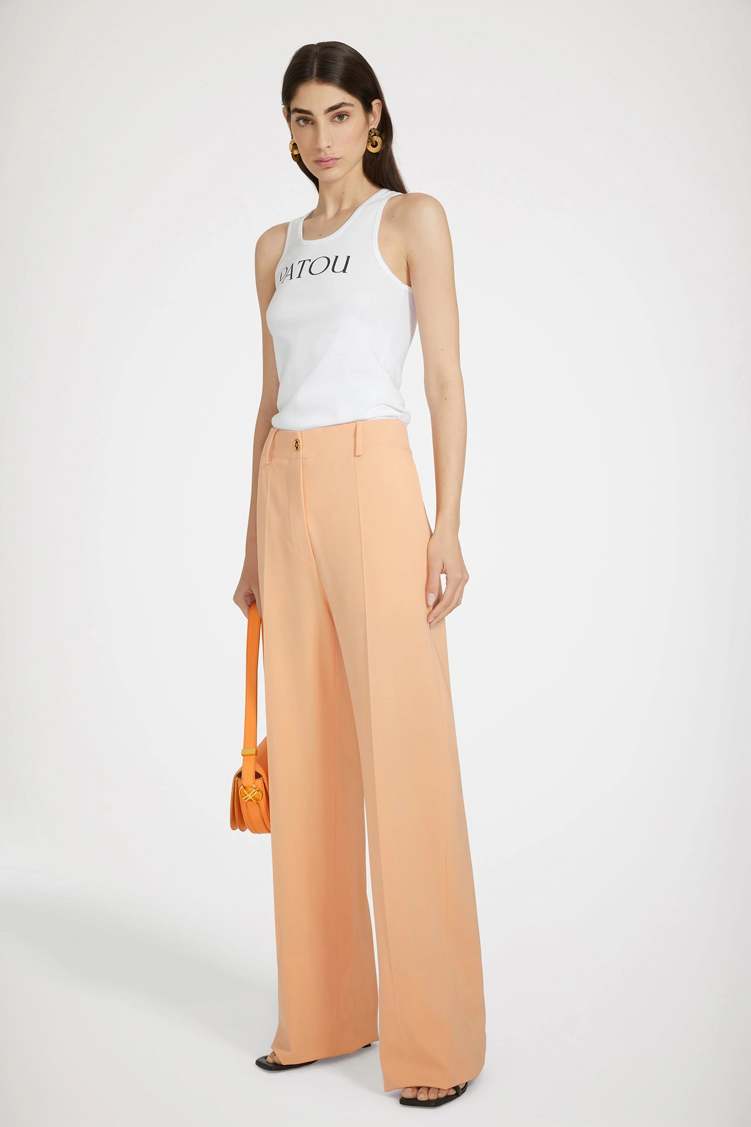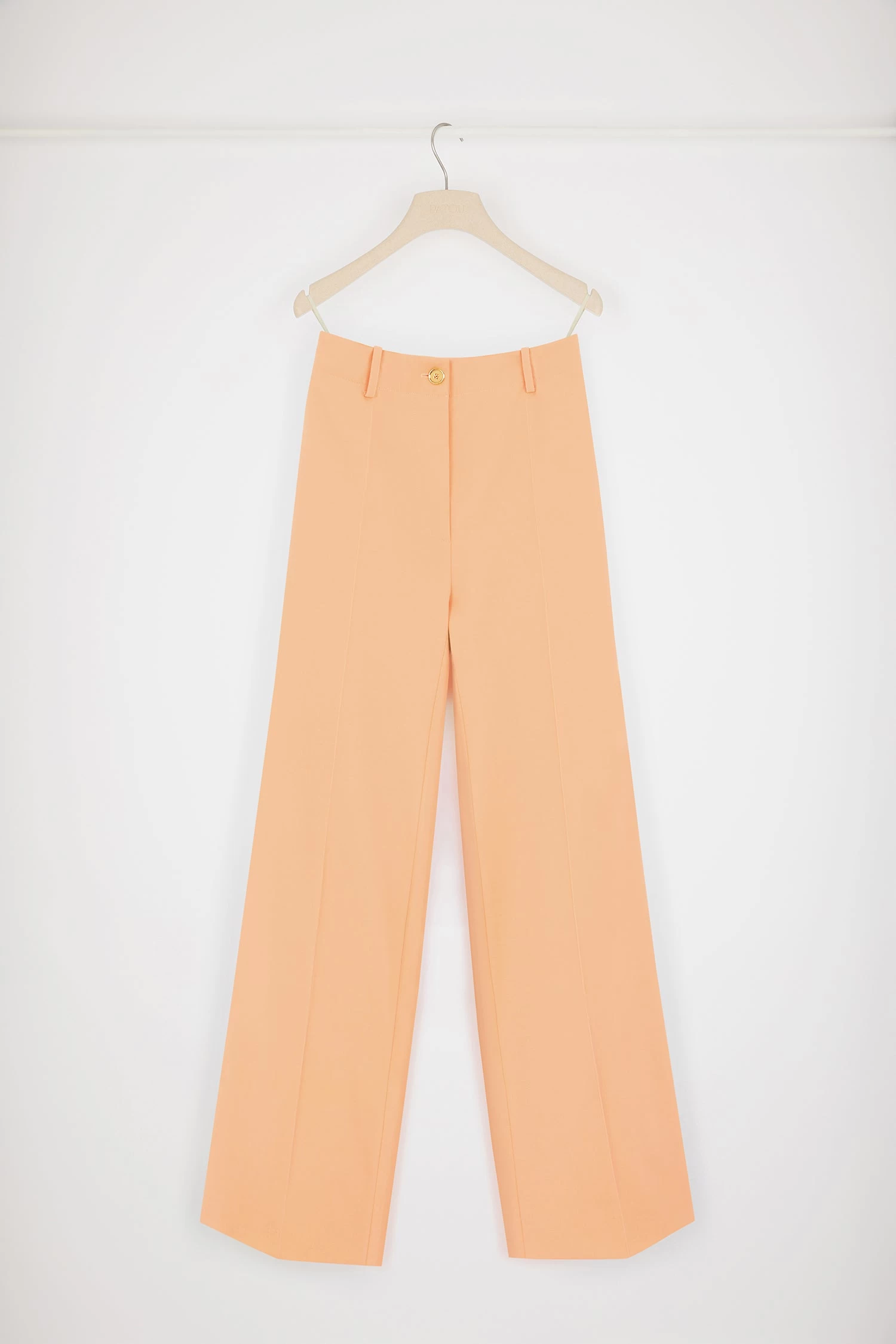 Light orange technical wool twill trousers. Iconic Patou silhouette. Long straight fit. Fastens via a gold-tone JP-engraved summary and concealed zip at the front. Belt loops, two pockets at the sides. Signature darts at the back.