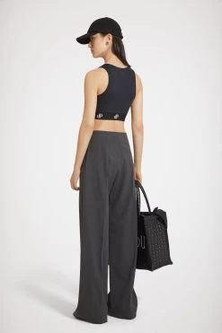 Ice blue cotton denim shorts. High waist. Mini length. Gold-tone Patou-engraved Medallion embellishment at the front. Gold-tone Patou-engraved summary at the front. Belt loops. Pockets at the sides. Patou embroidery at the waist. V seam at the back.