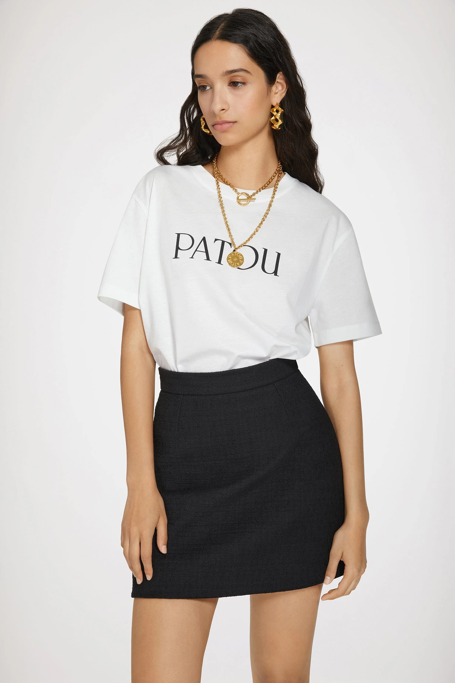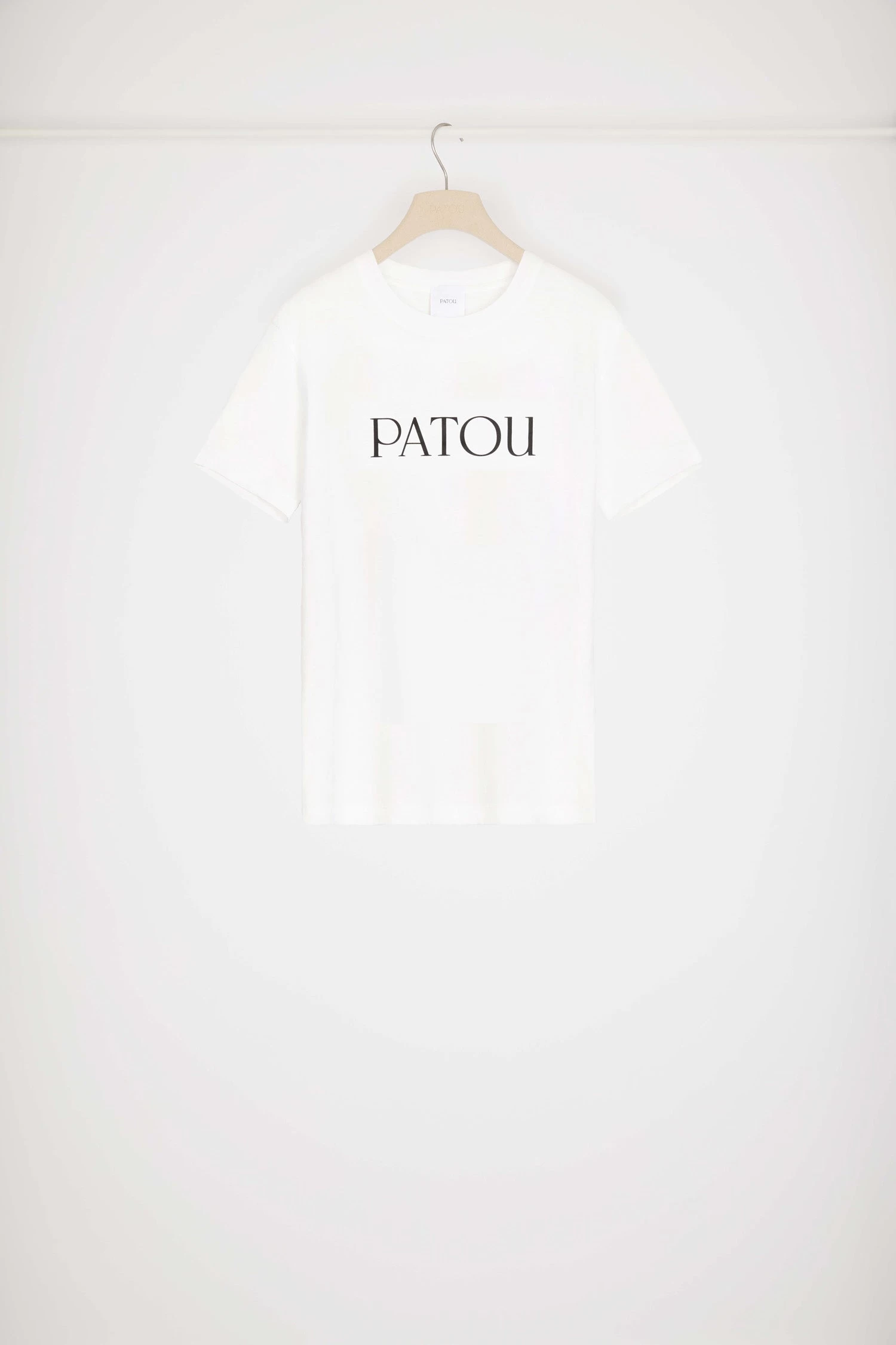 White organic cotton t-shirt. Crewneck style, regular fit. Black Patou lettering logo across the front.