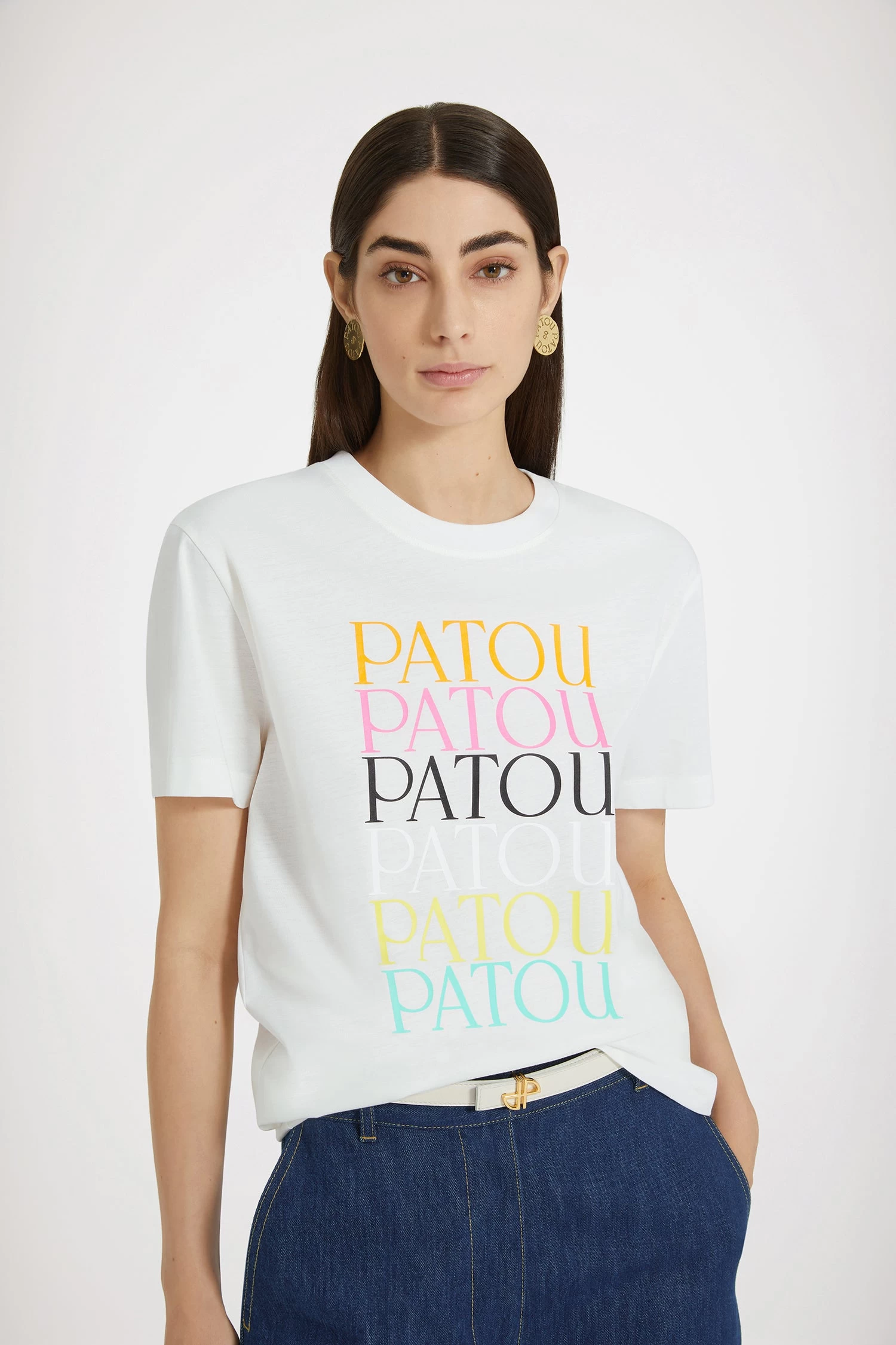 White organic cotton t-shirt. Regular fit. Crewneck. Multiple Patou logos printed at the front.