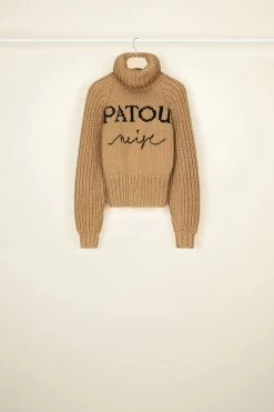 Anthracite grey technical wool twill trench coat. Tailored single-breasted silhouette. Knee length. Notch lapels. Storm flap at the front. Gold-tone Patou-engraved summarys at the front. Adjustable gold-tone buckle belt that sits at the waist. Side seam patch pockets at the front. Belted cuffs. Signature Patou label on the left arm. Signature curved seam at the back. Single back vent with gold-tone Patou-engraved summary.